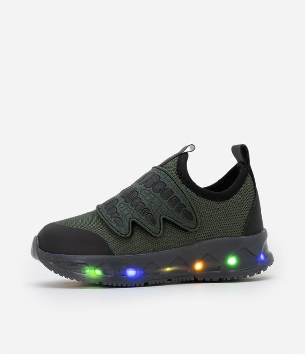 Tênis Infantil Calce Fácil com Sola LED e Estampa Pata de Dino - Tam 20 a 28 Verde