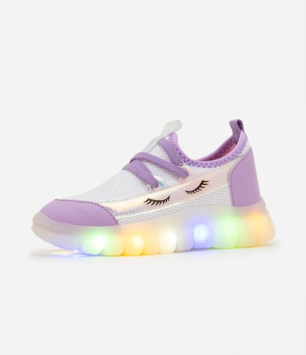 • Tênis Infantil com Desenho de Olhos e Sola Led - Tam 20 ao 27 Lilás 3