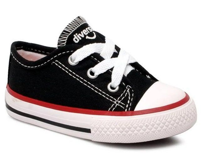 Tênis Infantil Diversão Canvas Low Preto/Branco-DI0002
