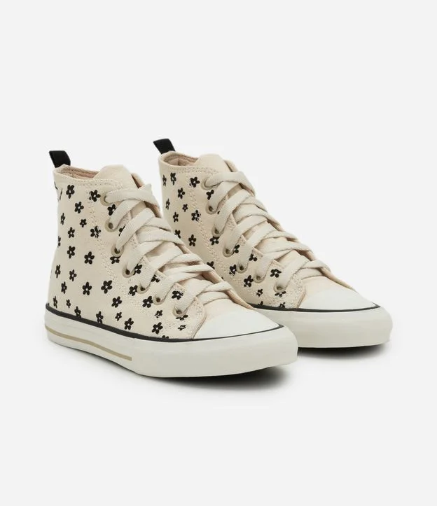 Tênis Infantil em Lona Cano Alto com Estampa Floral – Tam 28 a 35 Bege