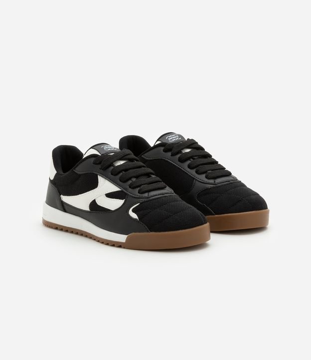 Tênis Infantil em PU com Recortes Contrastantes - Tam 33 ao 37 Preto