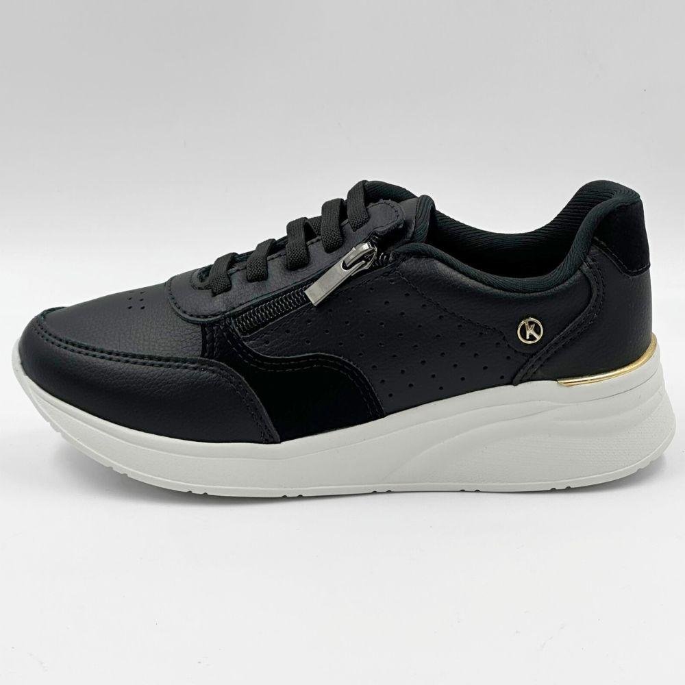 Tênis Kolosh Casual Flatform com Cadarço Elástico Feminina Preto