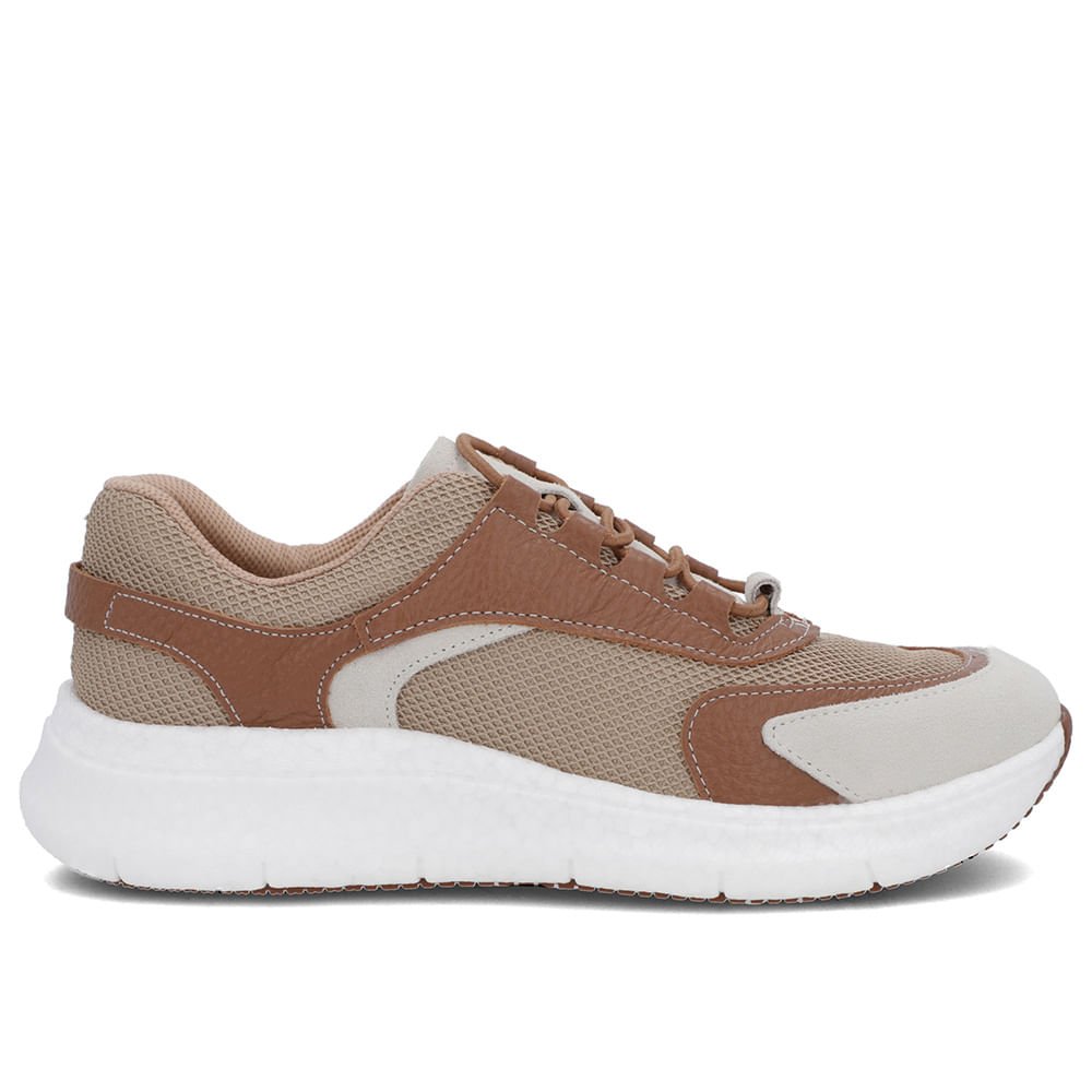 Tênis cabedal multimateriais nas cores gelo caramelo e blush. A nova tecnologia sola+leve ultra é feita com e-tpu e oferece excelente amortecimento, retorno de energia, durabilidade, leveza e flexibilidade, elevando o bem-estar da nossa consumidora a outro nível.
