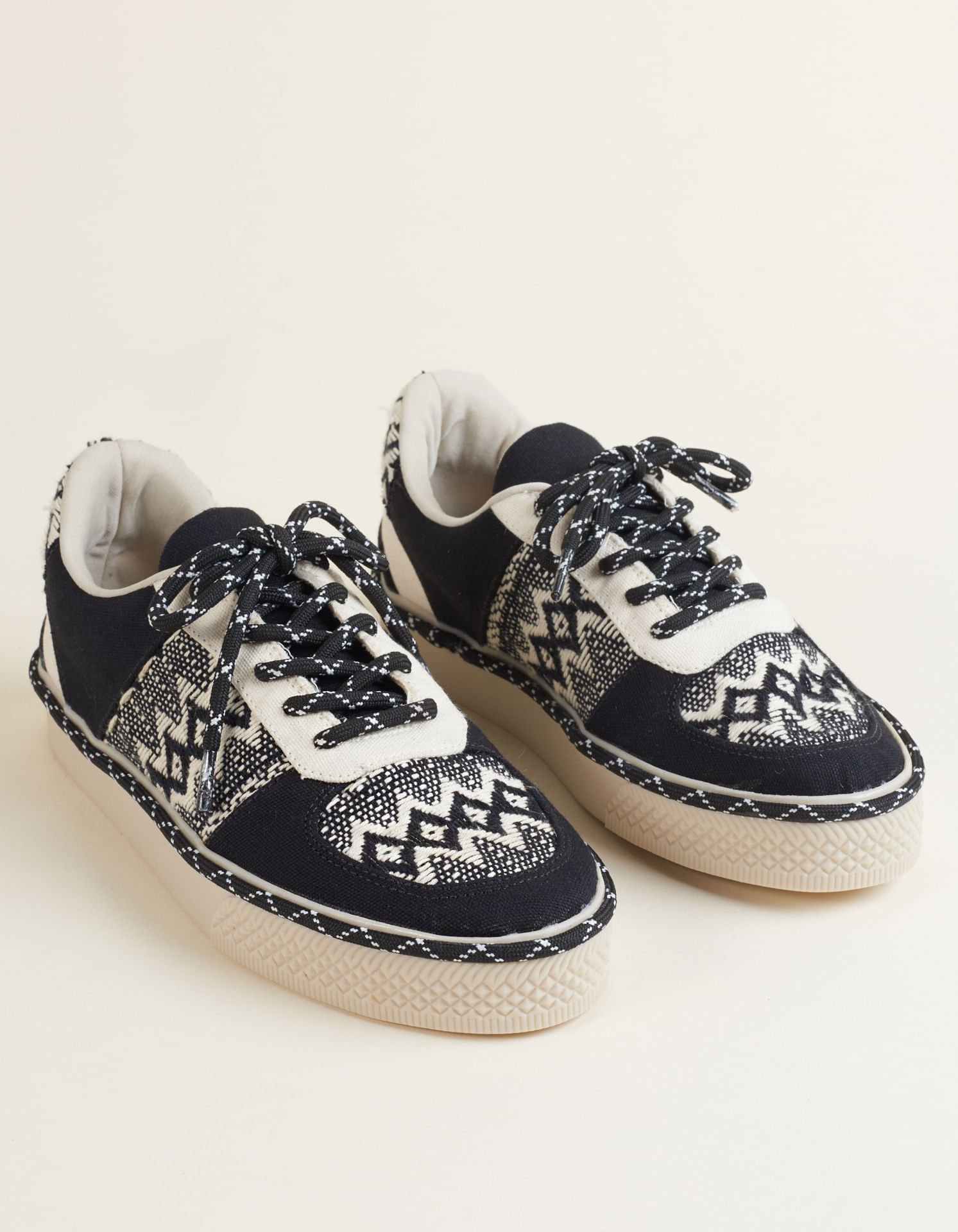 Tênis Mix De Recortes Com Tramas Artesanais - Preto Preto