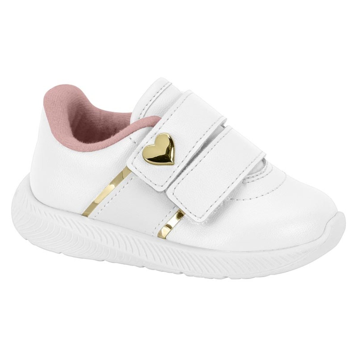 Explore o encanto e a praticidade com o tênis Molekinha, um calçado infantil que brilha com detalhes dourados na lateral! Com uma textura suave que encanta os pequenos pés, este tênis apresenta duas tiras de contato para fechamento, tornando o calce uma tarefa fácil e rápida. O toque de elegância é evidenciado por um coração dourado metálico decorativo na tira superior da fita de contato, adicionando um charme adorável ao visual. A sola branca do tênis é projetada com texturas para proporcionar aderência e flexibilidade, tornando-o ideal para as variadas atividades das crianças. Para um toque de glamour extra, uma faixa dourada fina ao longo da base do tênis completa o design de forma encantadora. Seu pequeno estará não apenas na moda, mas também confortável e pronto para brincar com estilo!