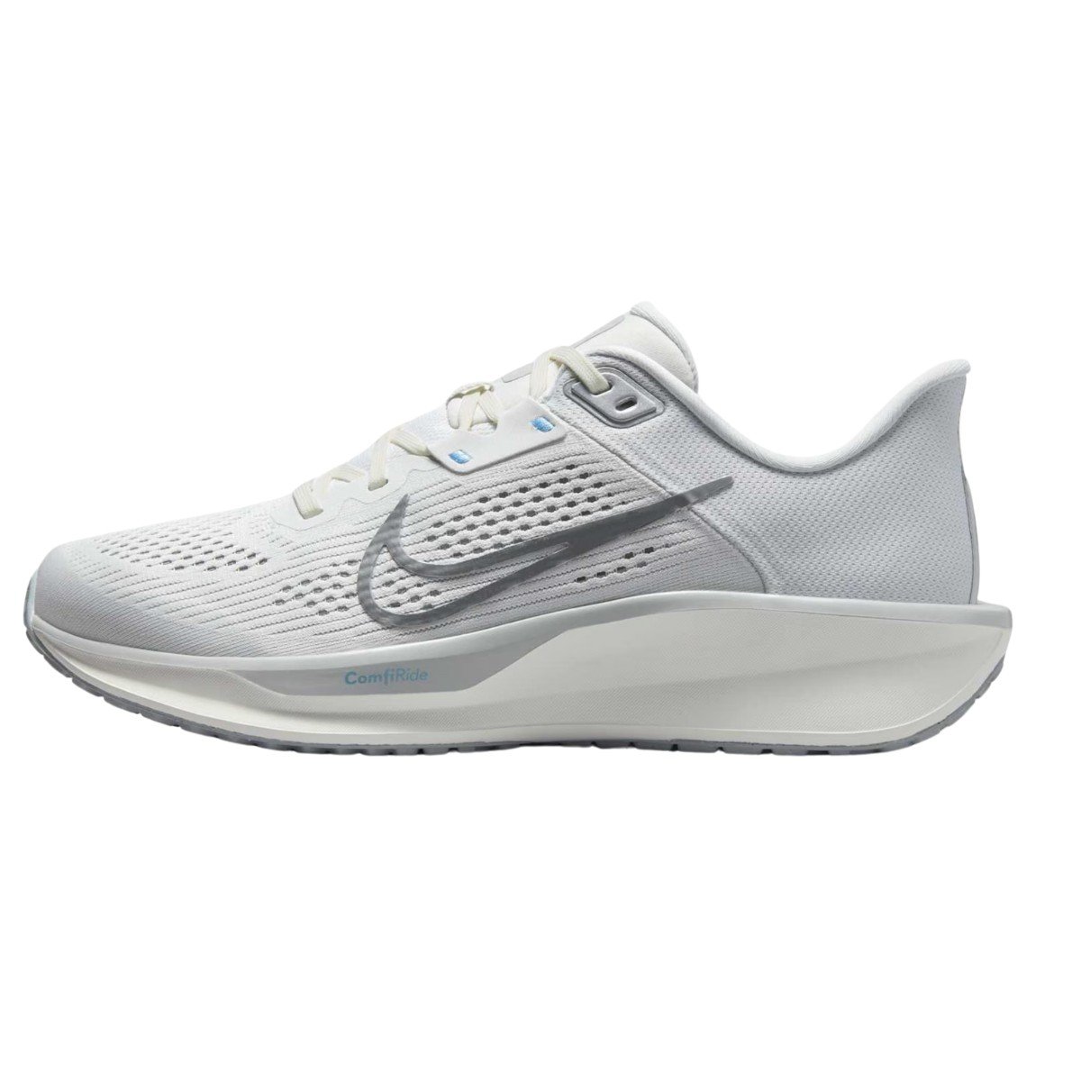 O Nike Quest 6 foi criado para corredores de todos os níveis. Mas não se engane: ele é tudo, menos básico. Uma faixa de ajuste superconfortável e de suporte no mediopé ajuda a mantê-lo estável durante suas milhas. Além disso, uma espuma supermacia na entressola ajuda a amortecer cada passo. Benefícios A faixa de ajuste no mediopé ajuda a mantenha seu pé mais seguro quanto mais apertados os cadarços estiverem. O aumento da altura da entressola significa uma passada mais suave e responsiva em comparação ao Quest 5. O solado de borracha tem tração para garantir mais aderência no asfalto. Detalhes do Produto Peso: Aprox. 247 g/8.7 oz (Tamanho feminino 37) Queda do calcanhar aos dedos: 10 mm