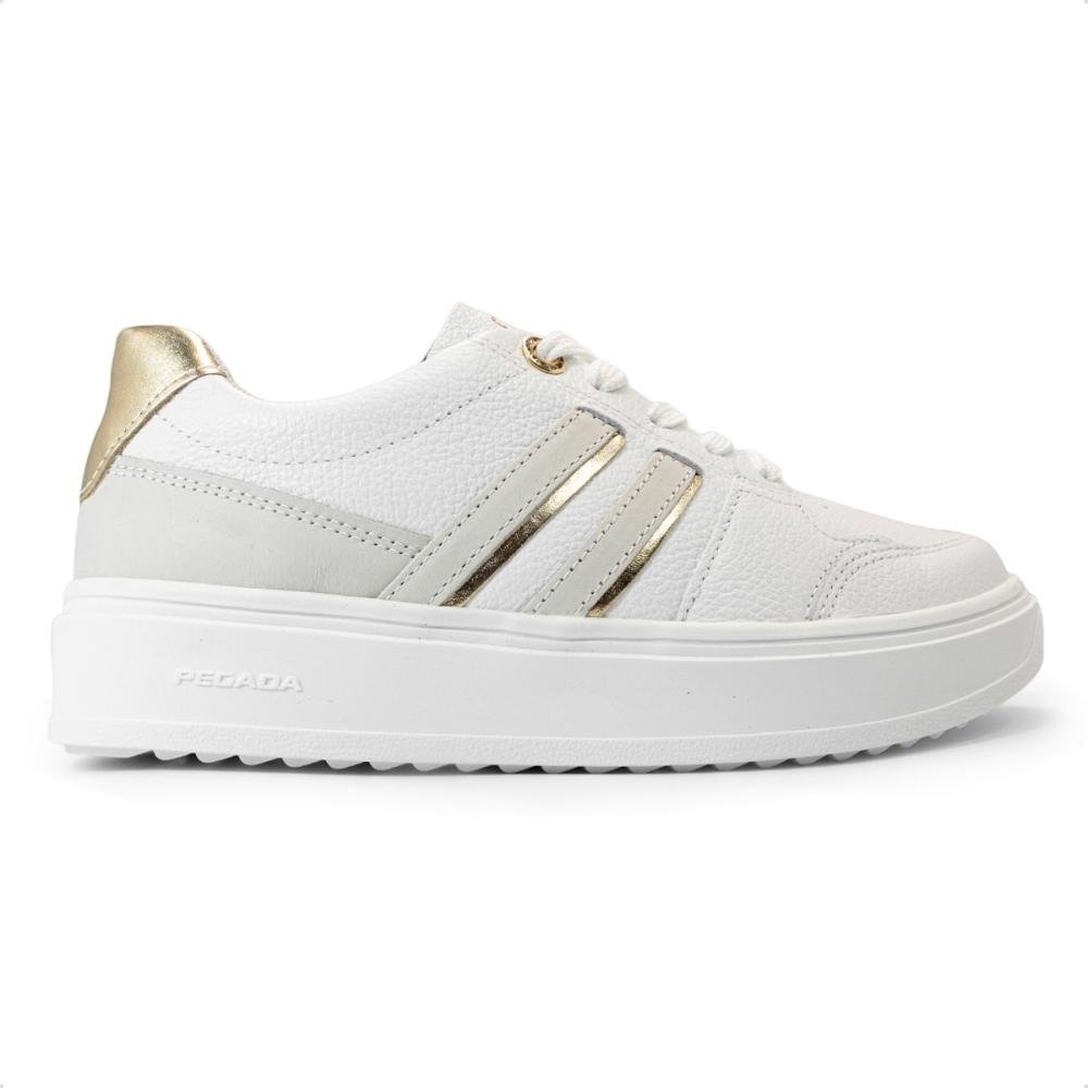 Tênis Pegada Feminino em Couro 211302 Branco/Dourado