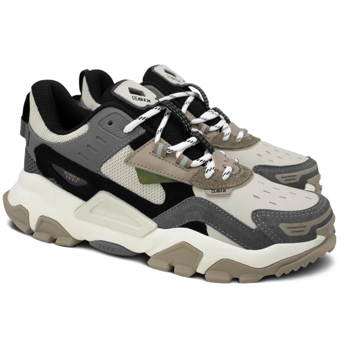 Tênis Qix Trek Bege Grafite é um Tenis de alta qualidade e design moderno, ideal para quem procura conforto e estilo. Ele possui um cabedal feito em mesh, camurça, sintetico que proporciona uma sensação agradável ao toque e uma aparência sofisticada. Detalhes por todo o tênis em refletivo, calcanhar, cabeal e lingueta. A entressola do Tênis Qix Trek é projetada com uma espuma de alta densidade, proporcionando amortecimento e absorção de impacto. Isso ajuda a proteger os pés durante atividades mais intensas, garantindo conforto ao longo do uso. A sola em borracha de alta resistência e detalhes no furta cor o tênis Trek é uma ótima escolha para quem tem estilo e autenticidade.