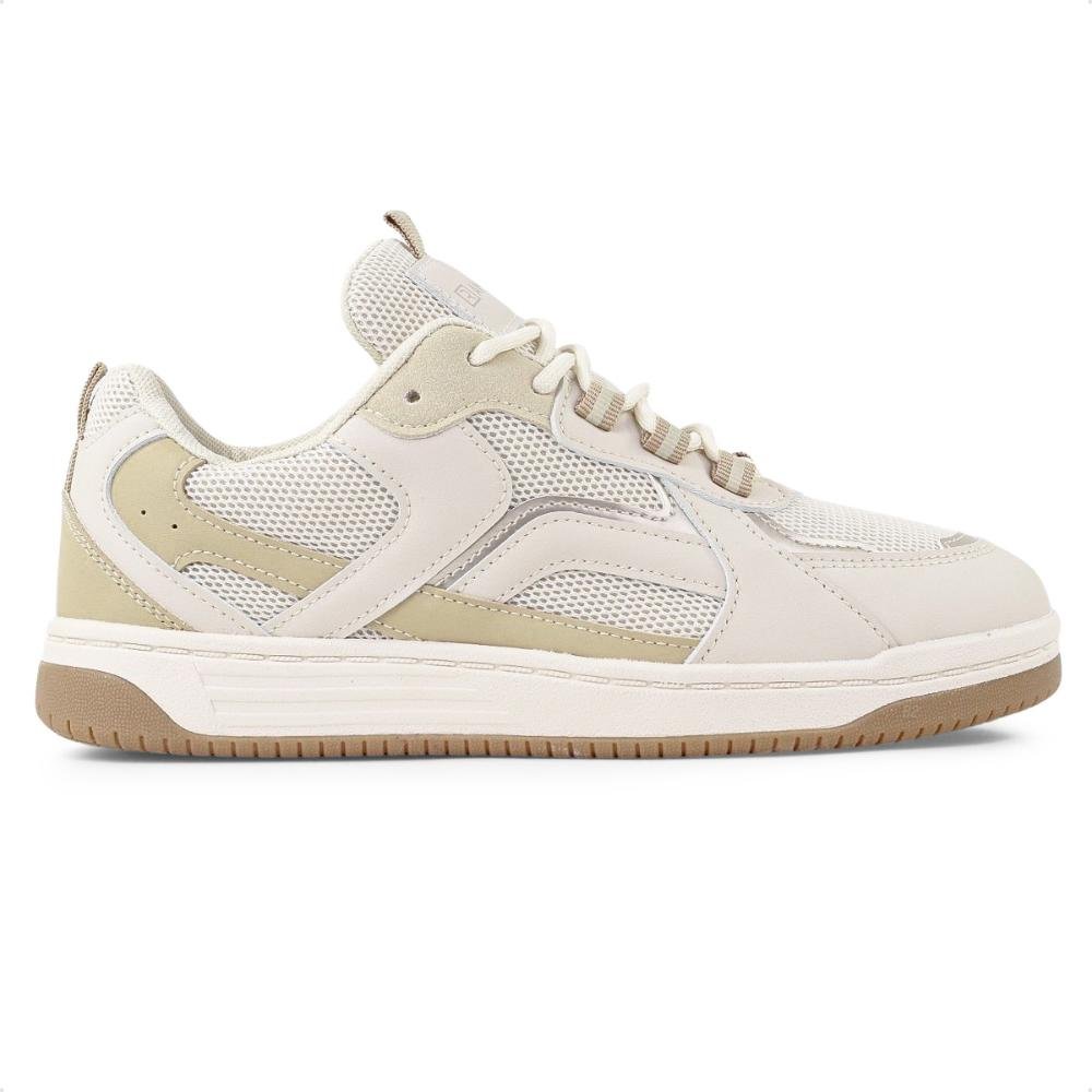 Cabedal, confeccionado em material sintétic¿ e têxtil, apresenta um visual moderno com recortes e sobreposições que conferem um toque de originalidade ao modelo.