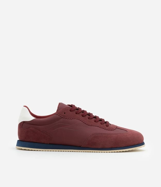 Tênis Retrô Sintético com Recortes Efeito Camurça Vermelho