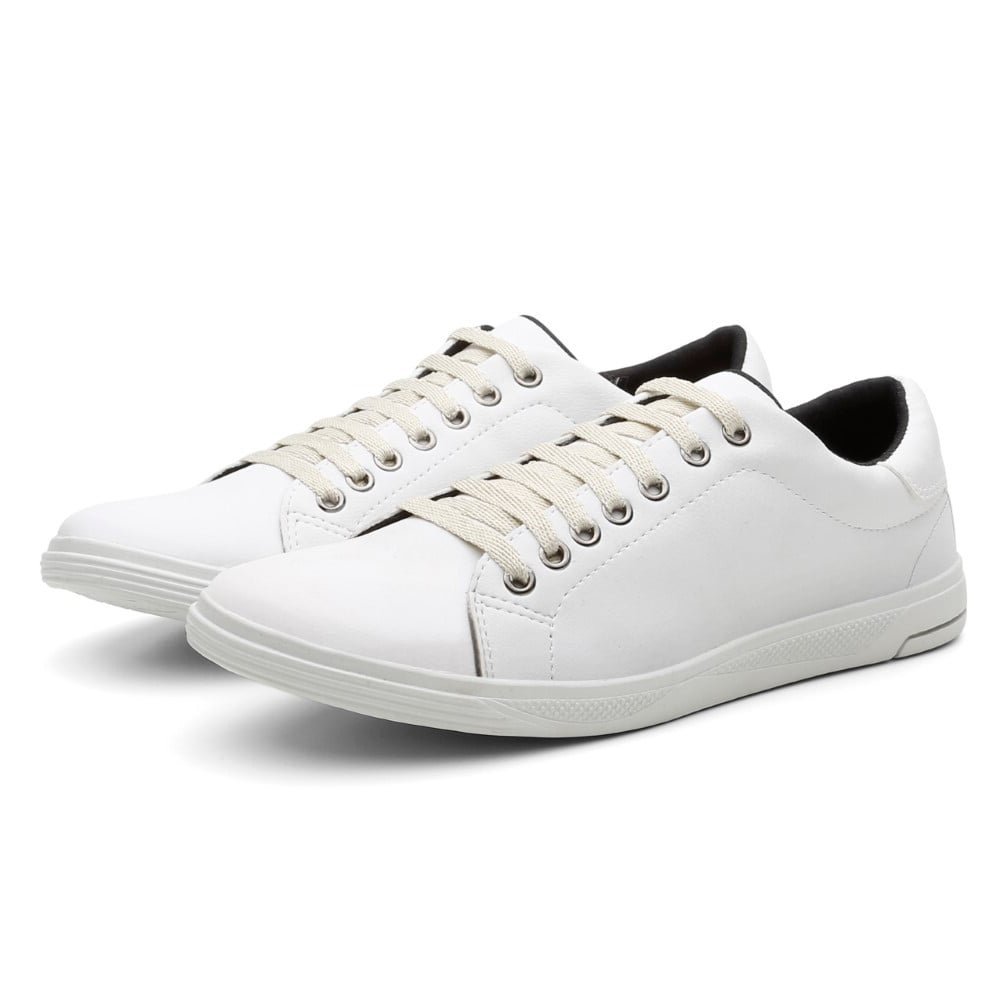 Tenis Sapatenis Masculino Cadarço Palmilha Macia Confortavel Calce Facil Moderno Dia a Dia Branco