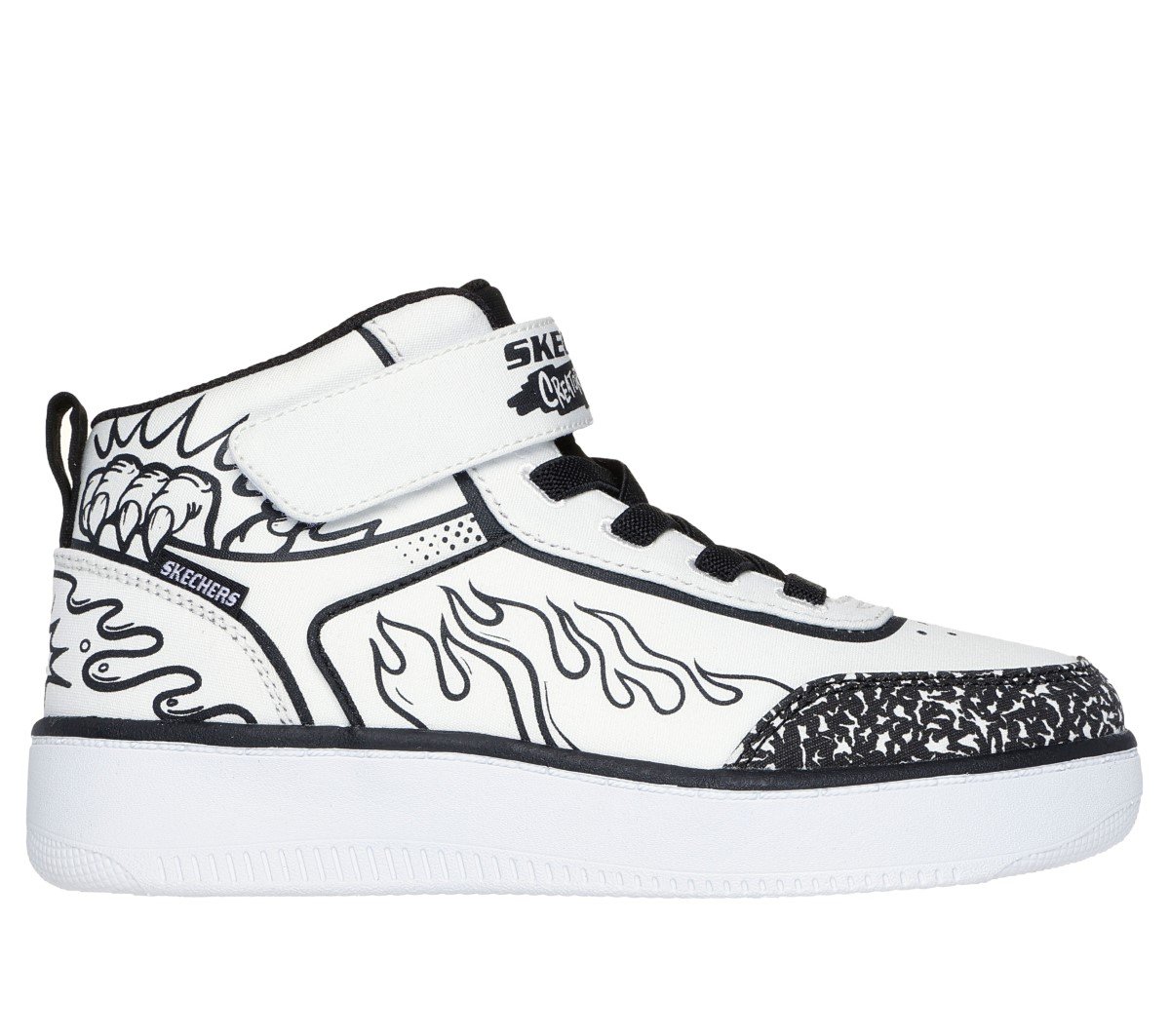 O Tênis Skechers Infantil Sport Court 92 - Color-Blitz (código 403500L.WBK) é um modelo inovador que permite às crianças expressarem sua criatividade. Este tênis de cano médio apresenta uma parte superior em material sintético branco, projetada para ser personalizada com os marcadores coloridos incluídos. Após a personalização, o tênis pode ser lavado na máquina, permitindo novas criações. ¿