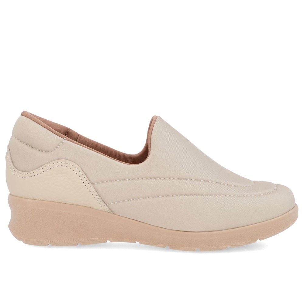 Tênis cabedal em tecido elástano na cor vanilla.O modelo possui tecnologia Pés Sensíveis, que através da redução de dobras e costuras internas acomoda confortavelmente os pés, pela sua construção ter materiais de rápida absorção de suor, hidratação e propriedades antibacterianas e antifúngicas.