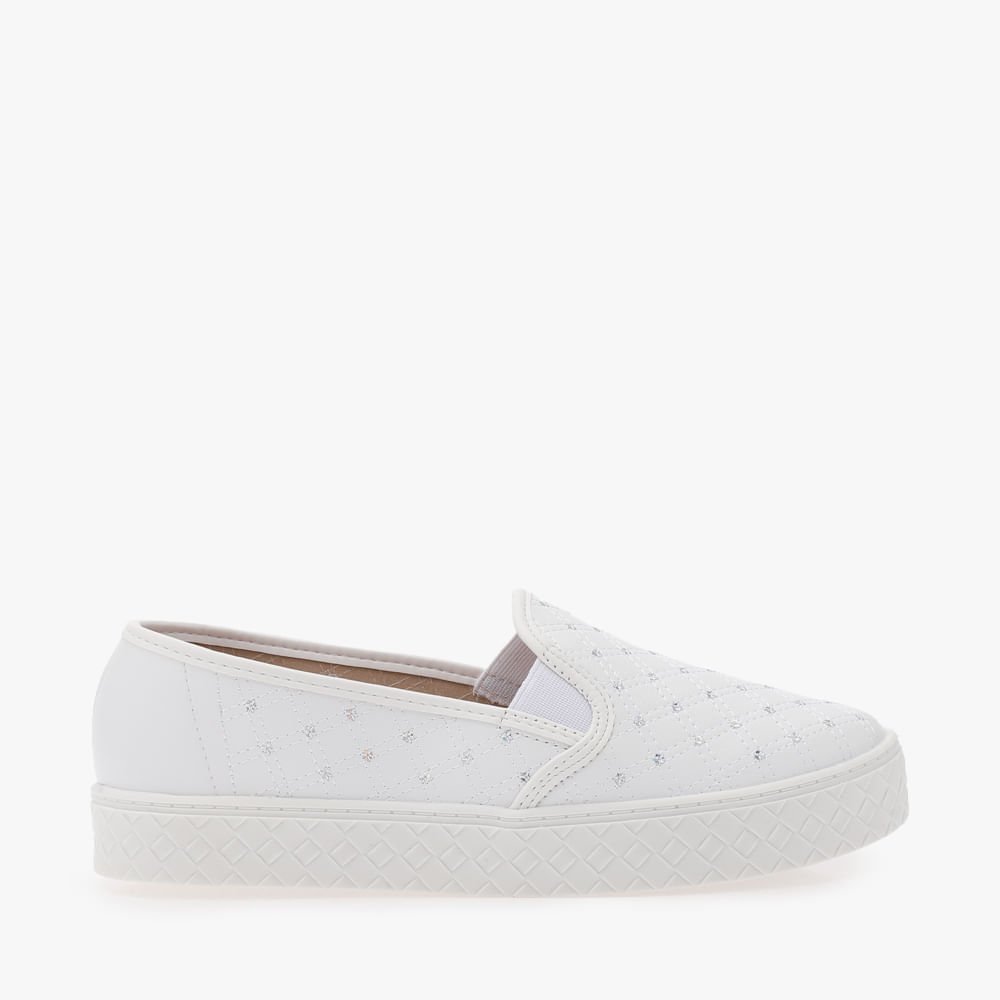 Tênis Slip On Flatform Com Mini Paetês