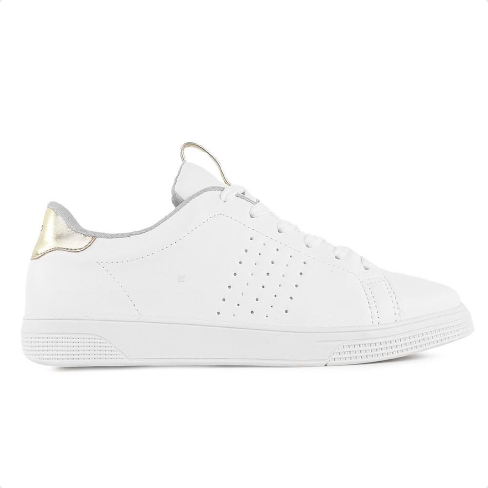 Tênis Via Uno Moda Microfuros Feminino Branco/Dourado