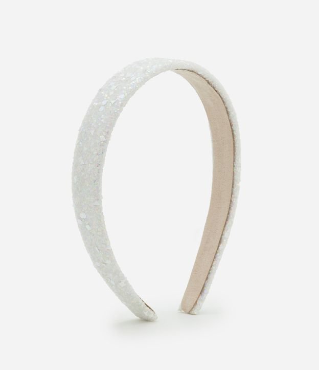Tira de cabelo infantil confeccionada em poliéster, sem estampa e com aplicação de brilhos por toda a peça.