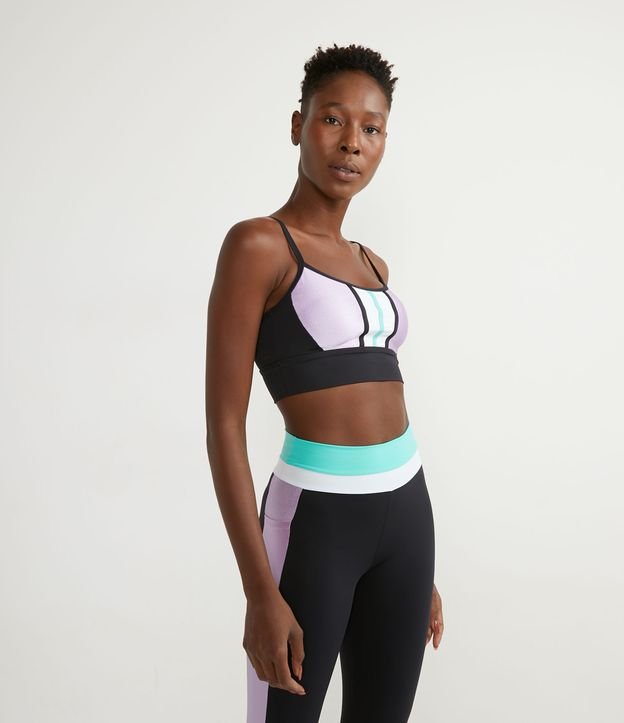 Top Alongado Esportivo em Poliamida com Alça Fina e Viés Contrastante