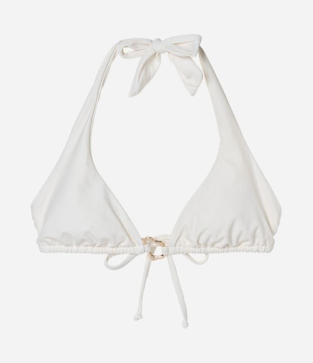 Top de biquíni confeccionado em microfibra com modelagem cortininha alongada e amarração no pescoço. Aviamento central dourado adiciona sofisticação ao design. Possui bojo removível e forro duplo para maior conforto e segurança. Ideal para compor looks elegantes de praia.