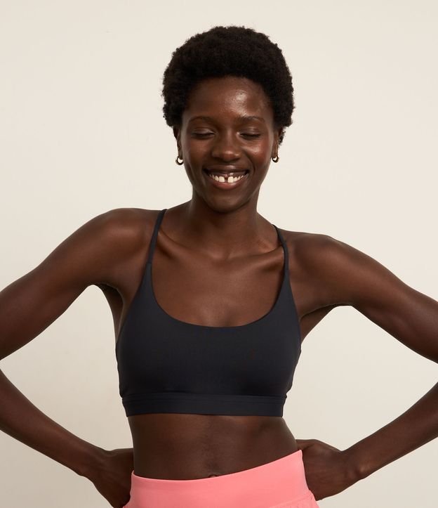 Top Bojo Esportivo em Microfibra com Alças Finas Cruzadas Preto