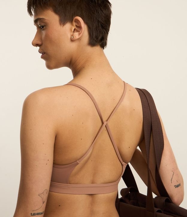 Top Bojo Esportivo em Microfibra com Alças Finas Cruzadas Bege