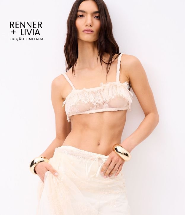Top em Renda com Barra Nuvem e Elástico na Alça Bege