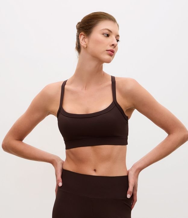 Top Esportivo Canelado com Alça Cruzada Marrom
