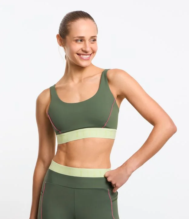 Top Esportivo com Bojo em Poliamida com Barra Elástica Verde