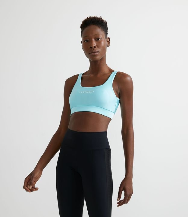 Top Esportivo em Poliamida com Bojo e Estampa "Strenght"