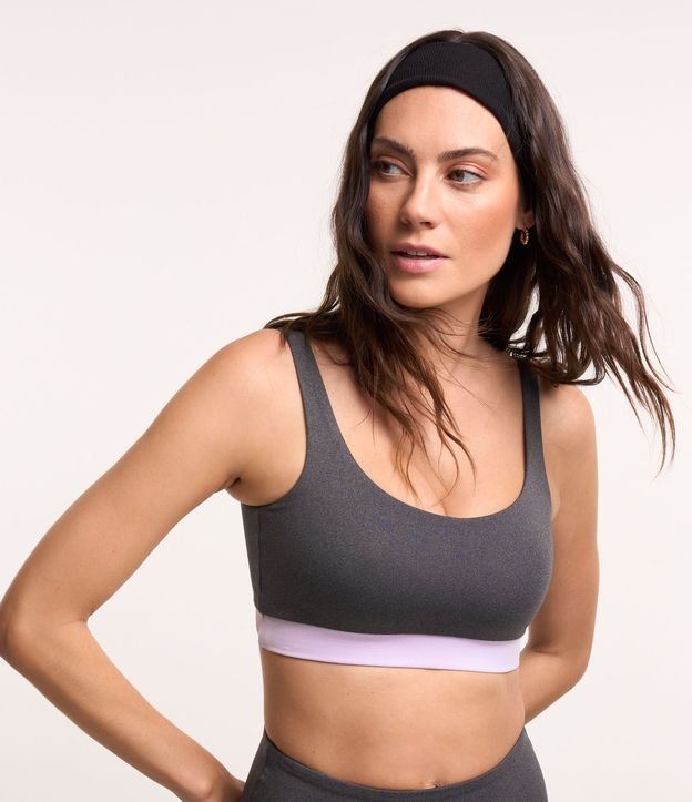 Top Esportivo em Poliamida com Decote Costas e Barra Contrastante Cinza