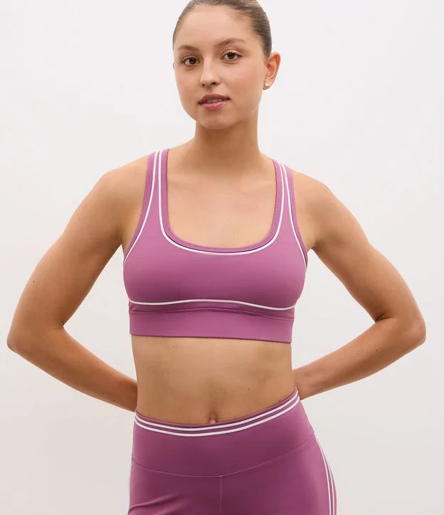Top Esportivo Nadador em Microfibra com Frisos Contrastantes e Bojo Removível Roxo