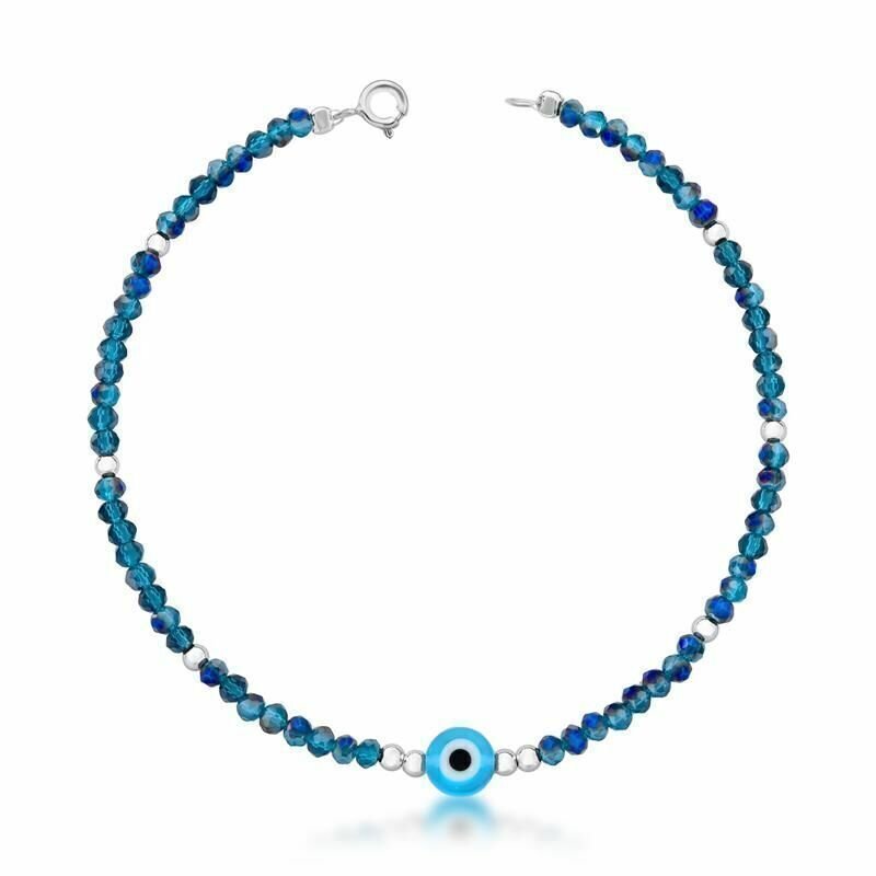 Tornozeleira Cristais Búlgaros E Olho Grego Joia Prata 925 Prata