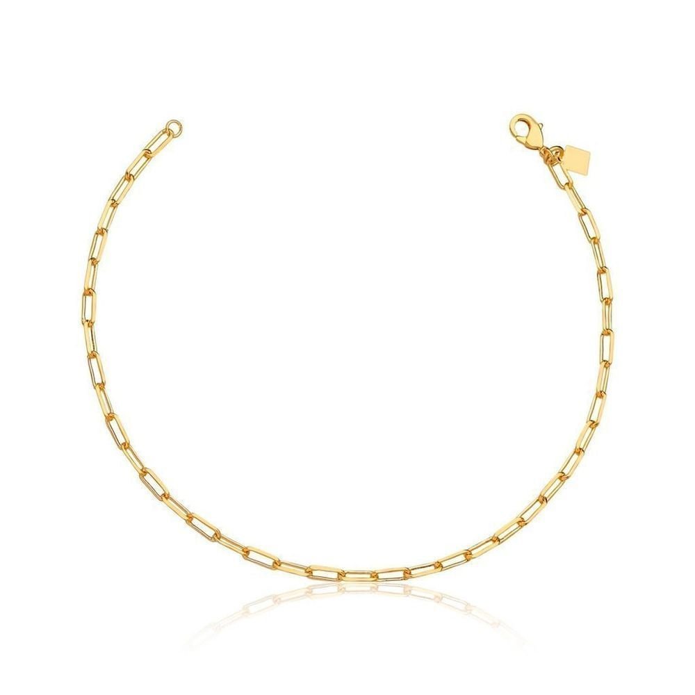 • Tornozeleira Delicada Elos Retangulares Semijoia Banho Ouro
