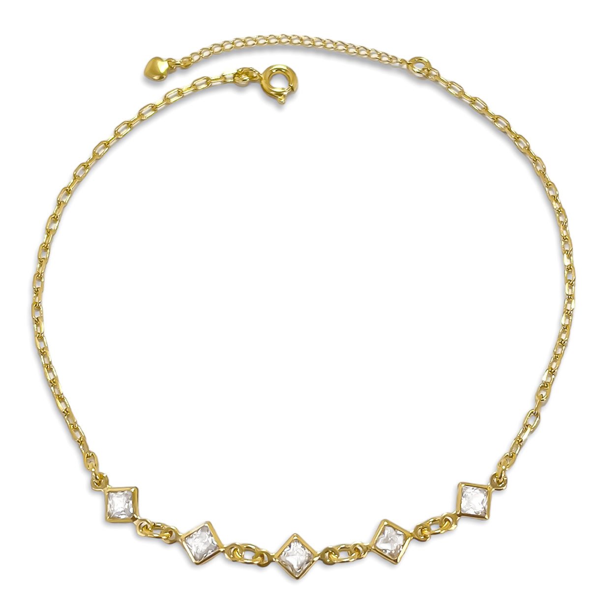 Tornozeleira Losango em Zirconia Banhada Ouro 18k