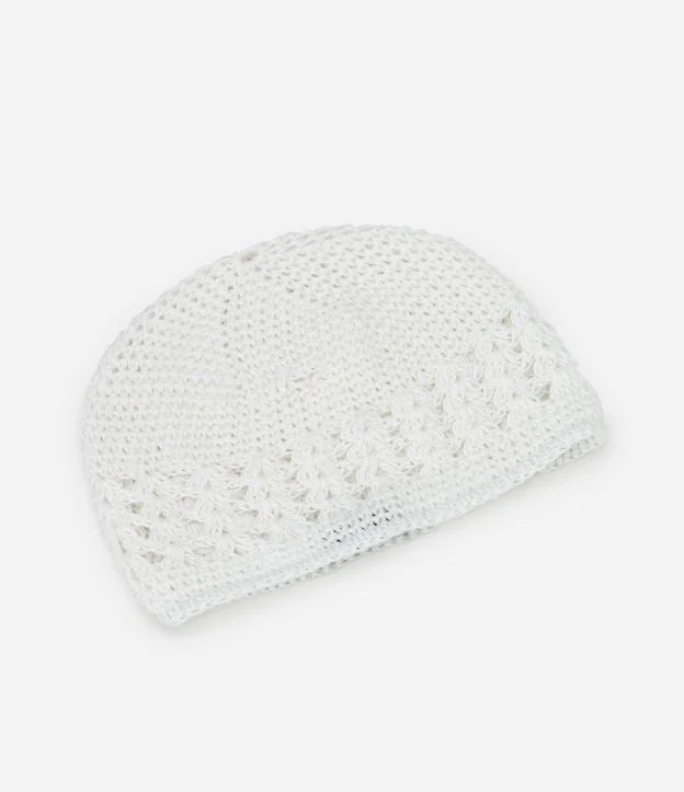 Touca em Crochê com Detalhe Contrastante Vazado Branco