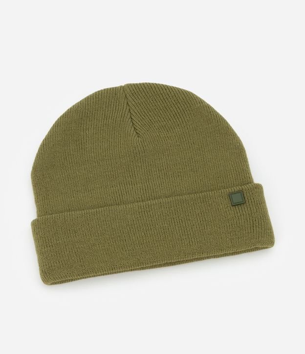 Touca em Tricô com Borda Dobradinha e Etiqueta Aplicada Verde
