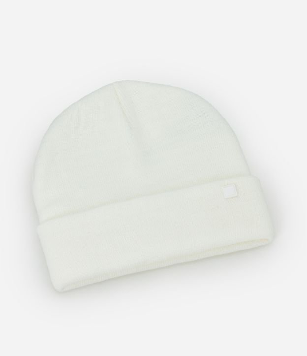 Touca em Tricô com Borda Dobradinha e Etiqueta Aplicada Branco