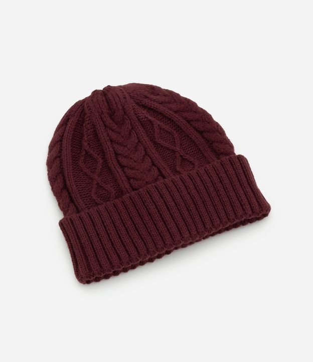 Touca em Tricô com Textura Trançada Vinho