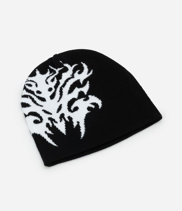 Touca em Tricô Dupla Face com Estampa Tribal Abstrata Preto