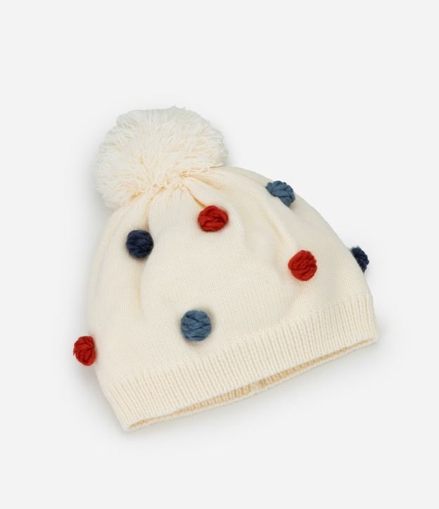 Touca infantil para bebê em tricô macio, com corpo texturizado e aplicação de bolinhas em relevo distribuídas por toda a peça. Possui dobra com forro interno, pompom volumoso no topo, garantindo aquecimento, conforto e destaque nos looks infantis.