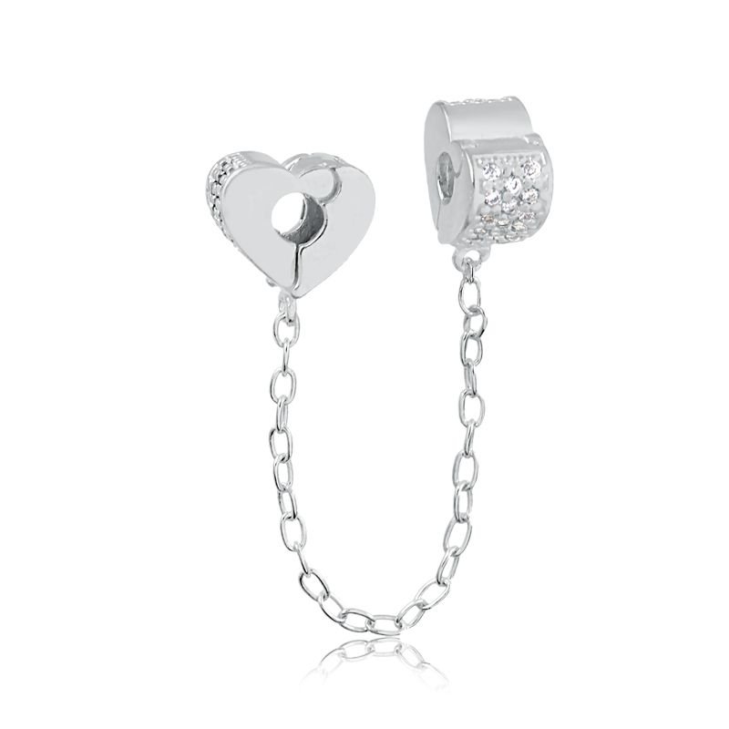 Trava de Segurança com Corrente Coração Zircônias Brancas