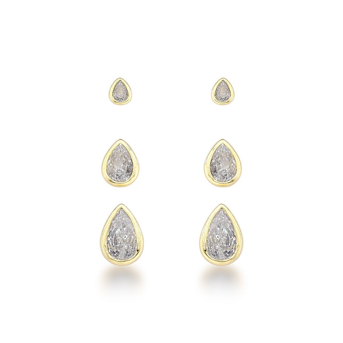 Trio de Brincos Gota de Zircônia Ouro 18k - Brilho Sofisticado Dourado