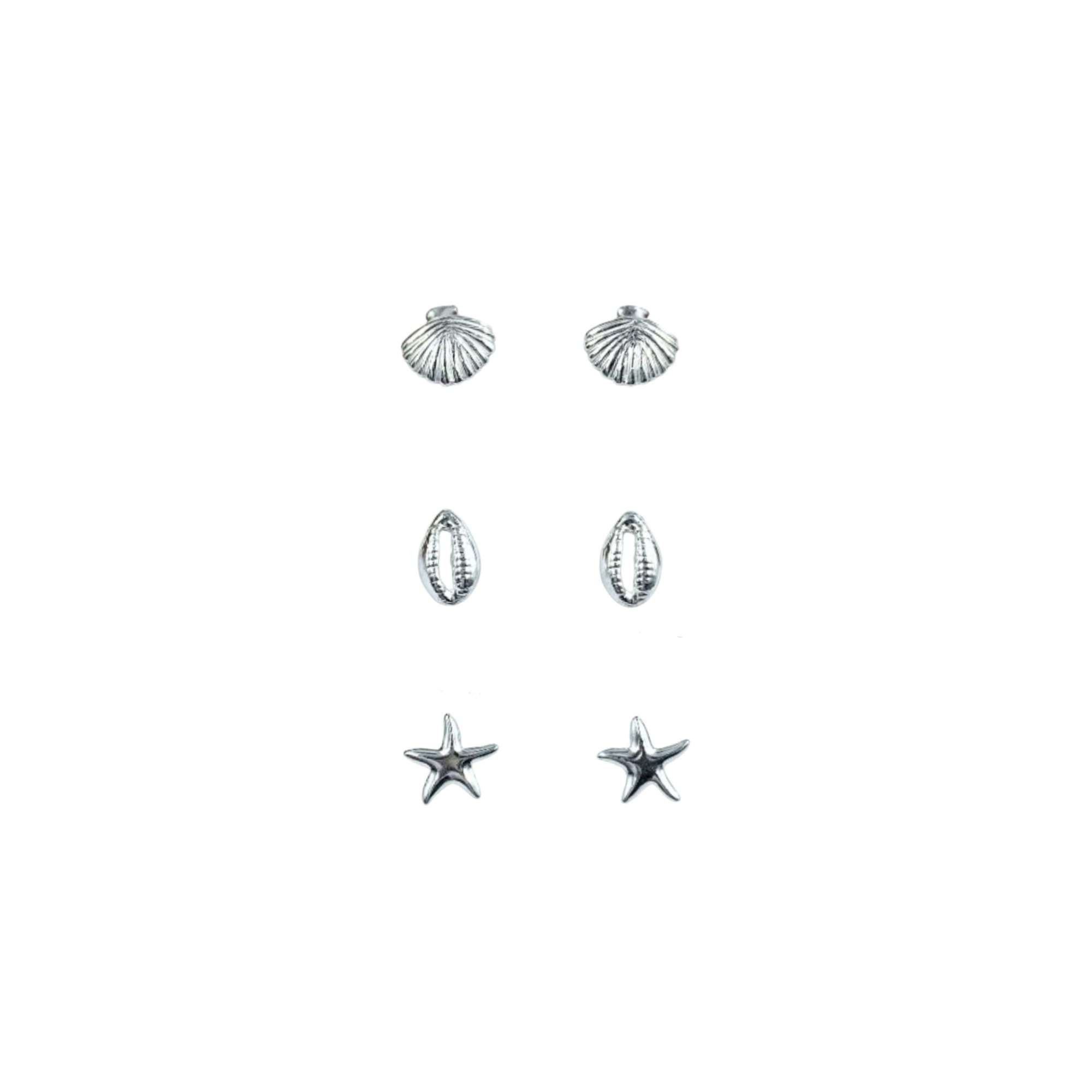 Trio de Brincos Moda Praia em Prata 925