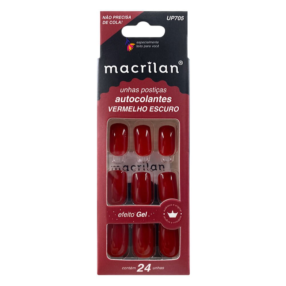 Unhas Postiças Macrilan Autocolantes Vermelho Escuro 24 Unidades