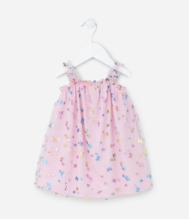 Vestido Alcinha Infantil em Tule com Borboletas - Tam 0 a 18 meses