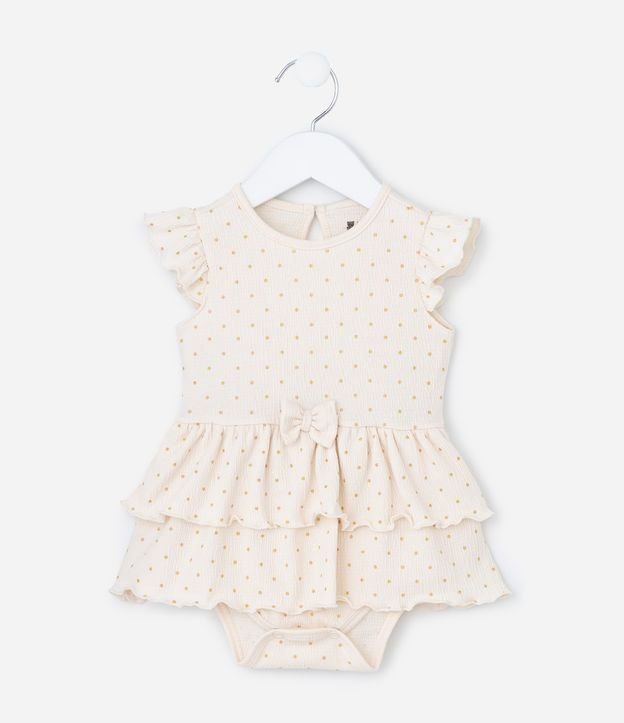 Vestido Body Infantil com Textura e Estampa Poá - Tam 0 a 18 meses Bege