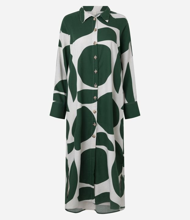 Vestido Chemise em Viscolinho com Estampa Abstrata Verde/Branco