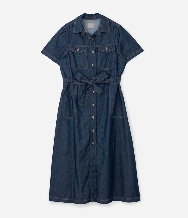 • Vestido Chemise Jeans Midi com Cinto Curve & Plus Size Azul 1