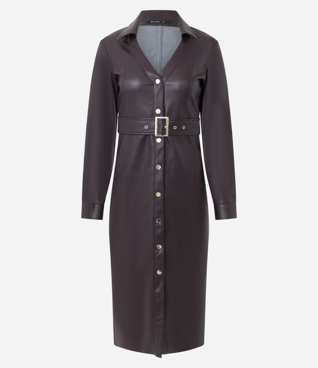 Vestido Chemise Midi em PU com Cinto Ajustável Marrom