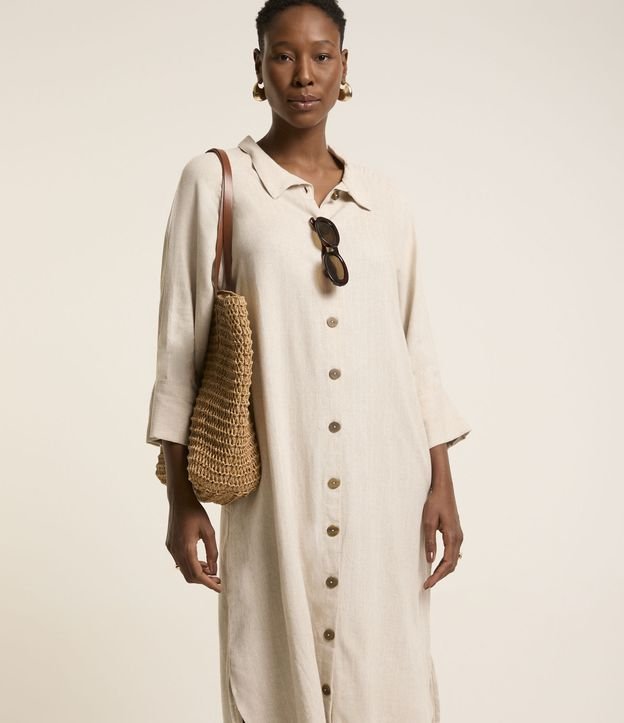 Vestido Chemise Midi em Viscolinho com Abotoamento