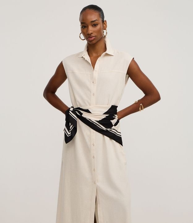 Vestido Chemise Plano com Linho e Botões Off White